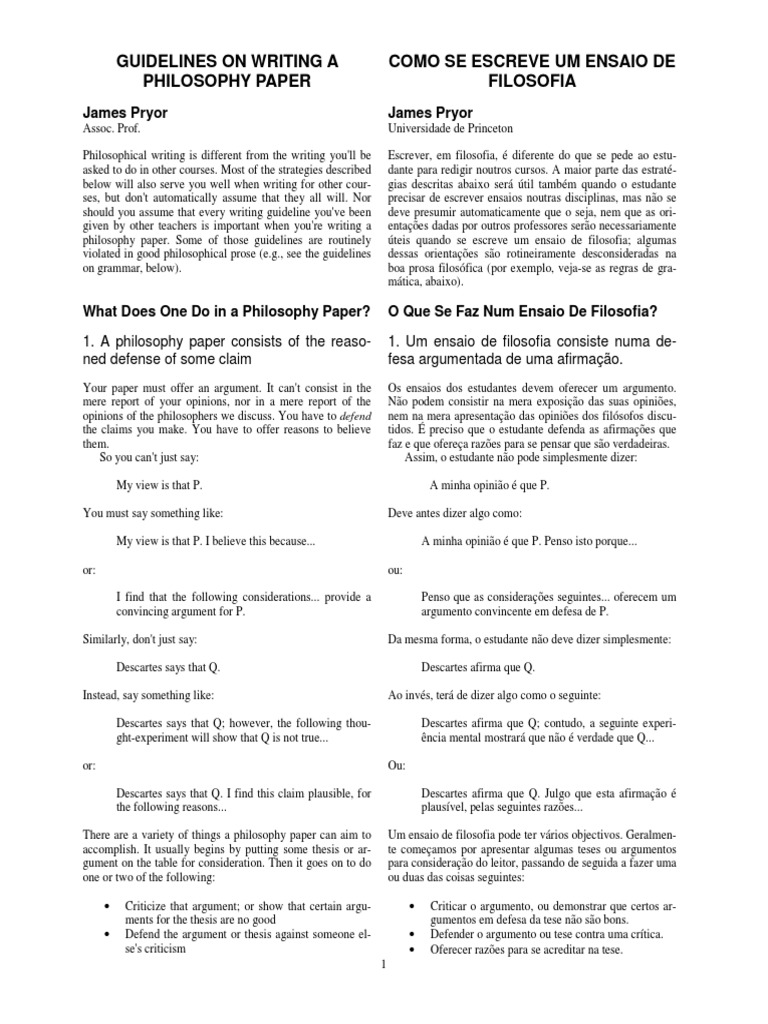 1. Um ensaio de filosofia consiste numa de- fesa argumentada de uma afirmação.