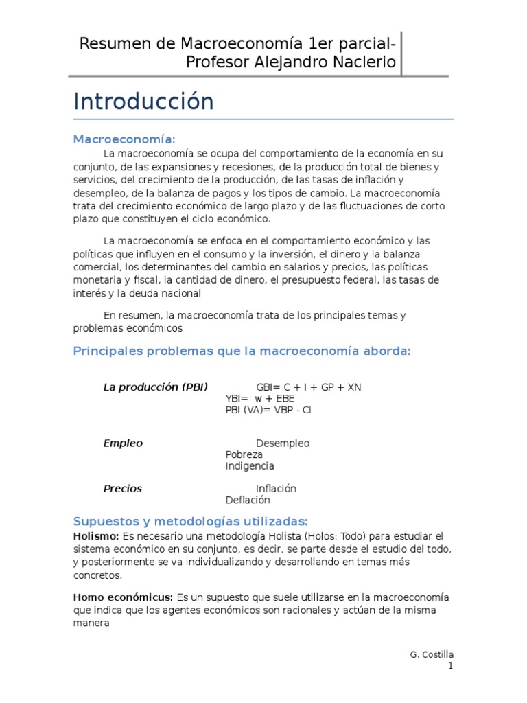 La macroeconoma se ocupa del comportamiento de la economa en su