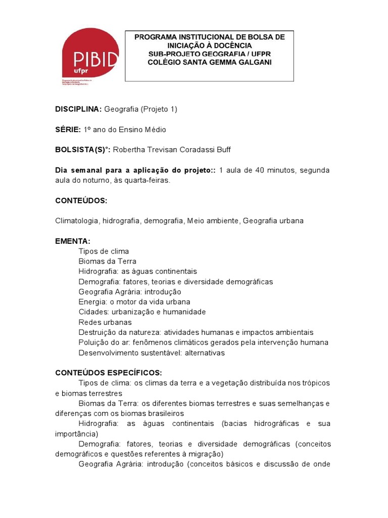 DISCIPLINA: Geografia (Projeto 1)