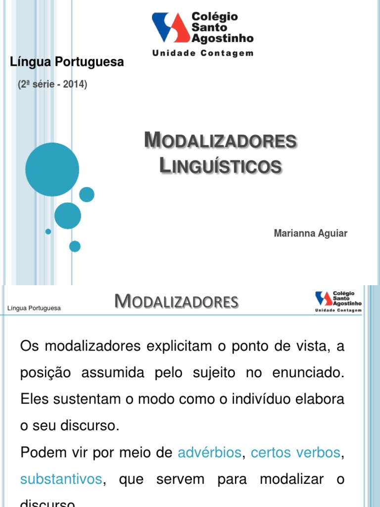 Lngua Portuguesa TIPOS DE MODALIZADORES