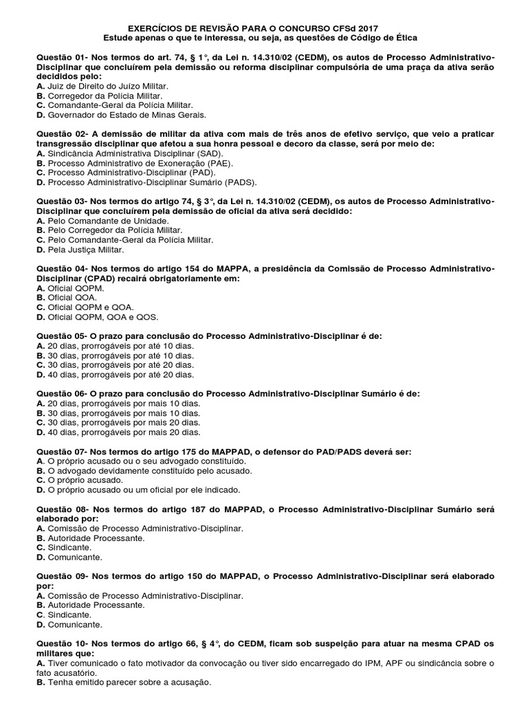 Questo 18 - Segundo a Lei Estadual n 14310/02, que contm o Cdigo de tica e Disciplina dos Militares de