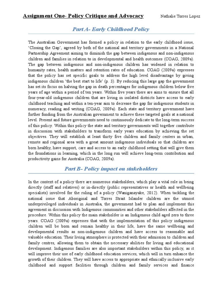 Assignment One- Policy Critique and Advocacy Nathalie Torres Lopez