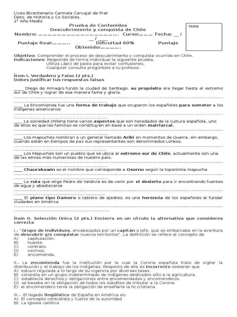____ La Encomienda fue una forma de trabajo que ocuparon los espaoles para someter a los