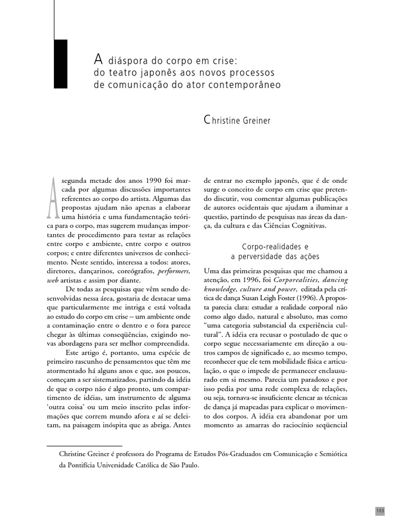 A dispora do corpo em crise: do teatro japons aos novos processos de comunicao do ator contemporneo