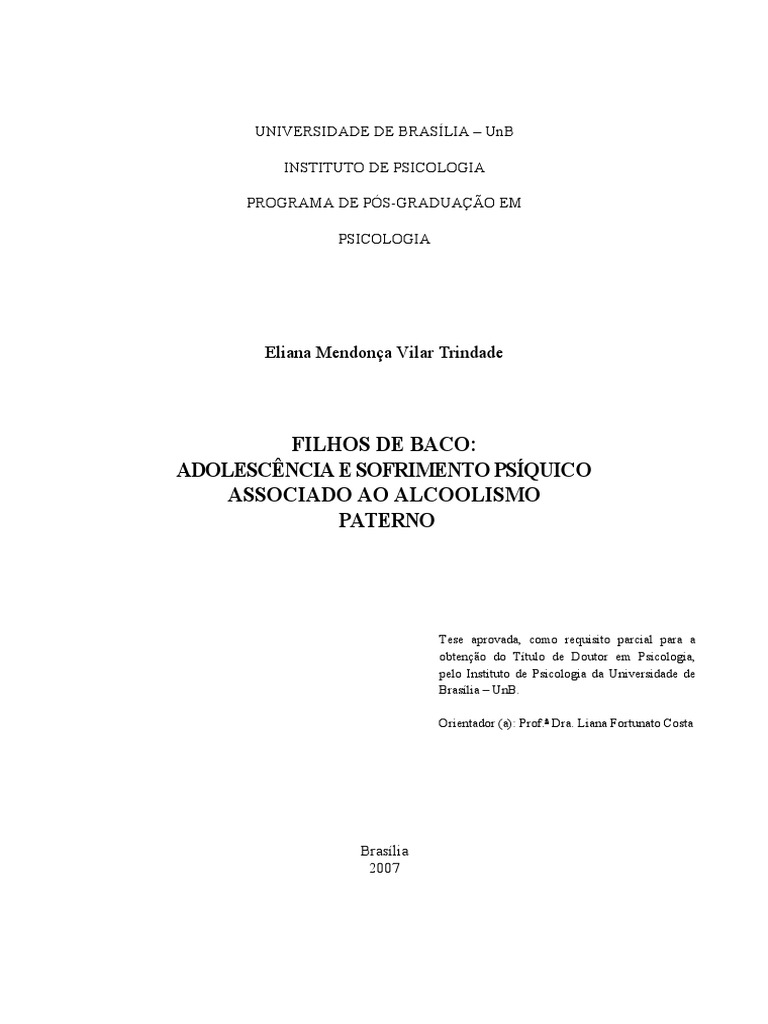 sofrimento psquico de adolescentes filhos de alcoolistas, sob a orientao do Professor Dr. Dnio