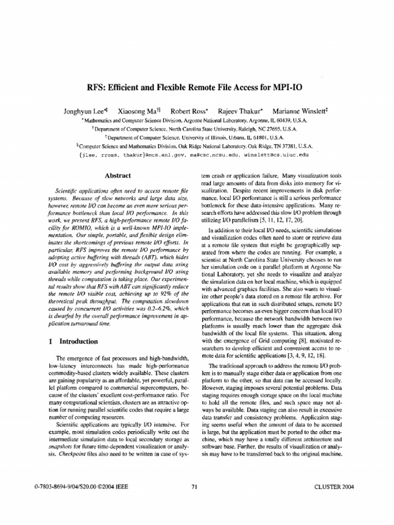 This work was supported in part by thc Mathematical, [I41 X. Ma, M. Winslett, J. Lee. and S. Yu. Improving MPI-