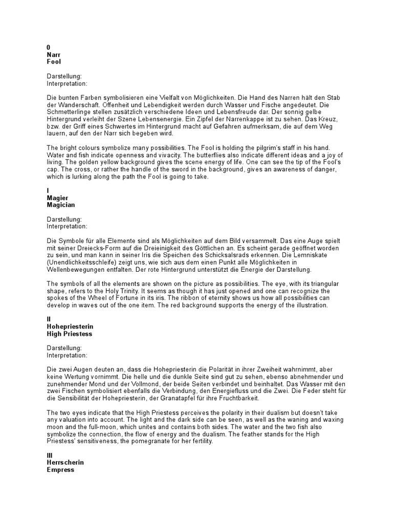 Gefhle und Emotionalitt, sowie die Drei der Herrscherin. Die angedeutete Schale, in der die Frchte