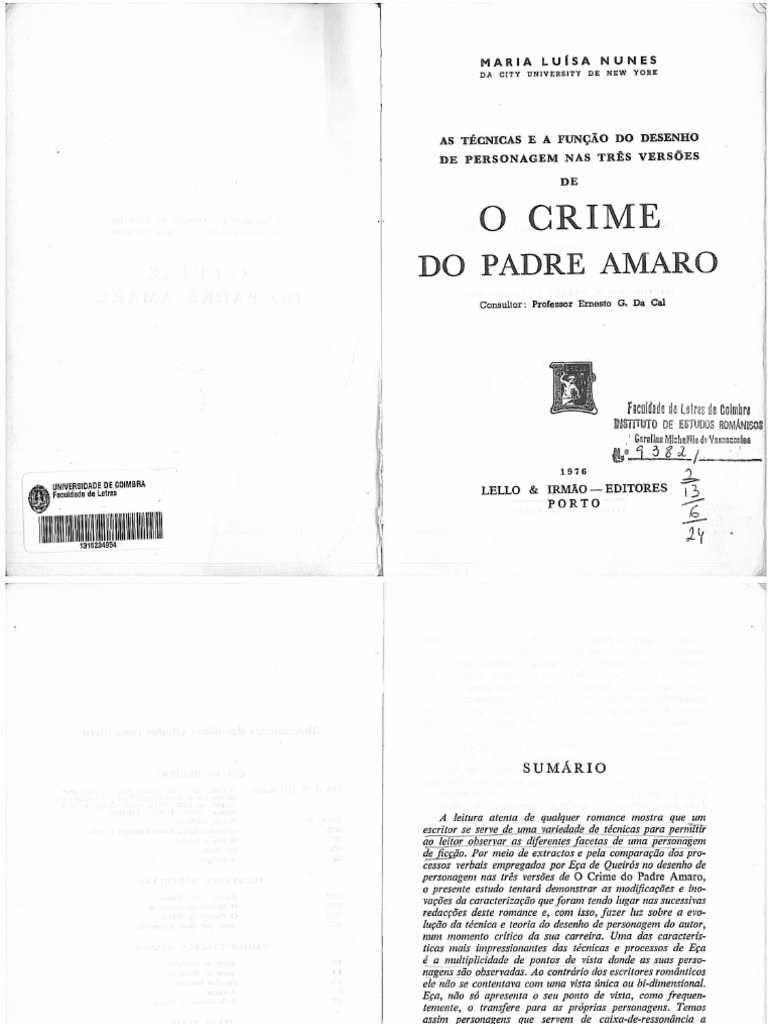 As técnicas e as funções do desenho de personagem nas três versões de O Crime do Padre Amaro por Maria Luísa Nunes