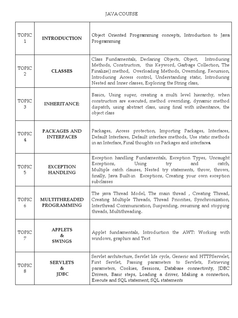 JAVA COURSE