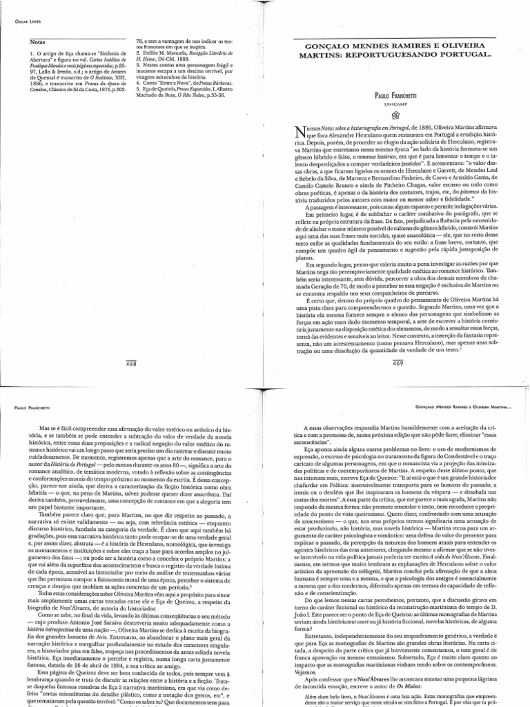 [...] penso que valeria muito a pena investigar as razões por que Martins nega tão peremptoriamente qualidade estética ao romance histórico. Também seria interessante, sem dúvida, percorrer a obra dos demais membros da chamada Geração de 70, de modo a perceber se essa negação é exclusiva de Martins ou se encontra respaldo nos seus companheiros de percurso.