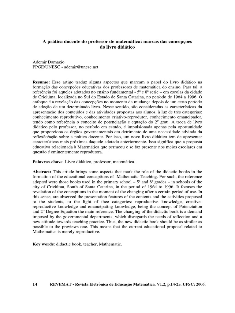 Palavras-chave: Livro didtico, professor, matemtica.