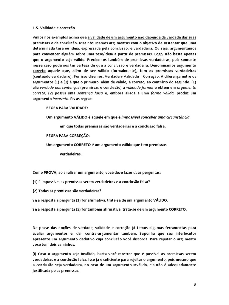 argumentos (1) e (2) que o primeiro, alm de vlido, correto, ao contrrio do segundo. (1)