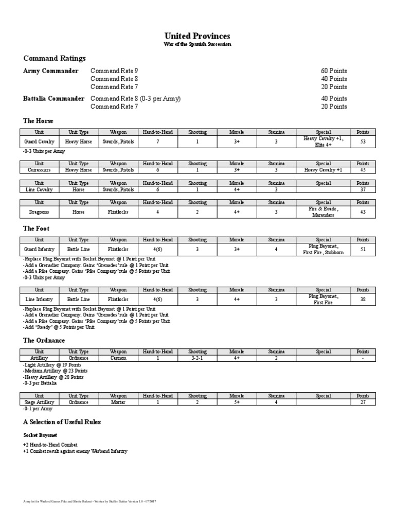 Unit Unit Type Weapon Hand-to-Hand Shooting Morale Stamina Special Points