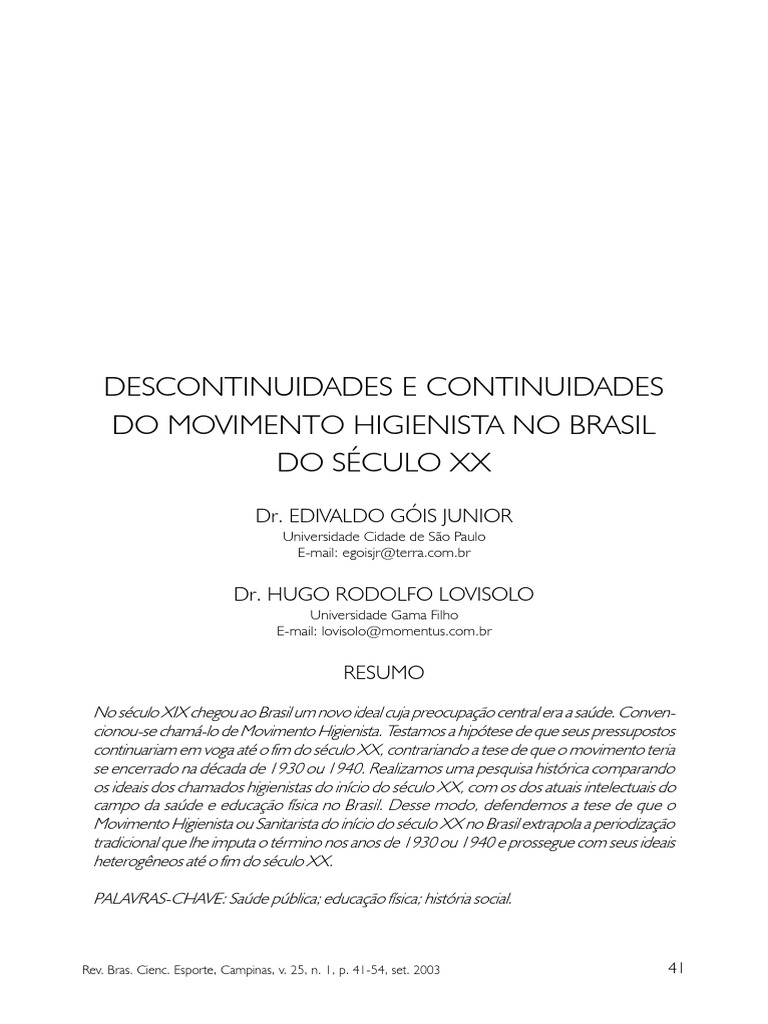 cham-lo de Movimento Higienista (Soares, 2001) ou Movimento Sanitarista