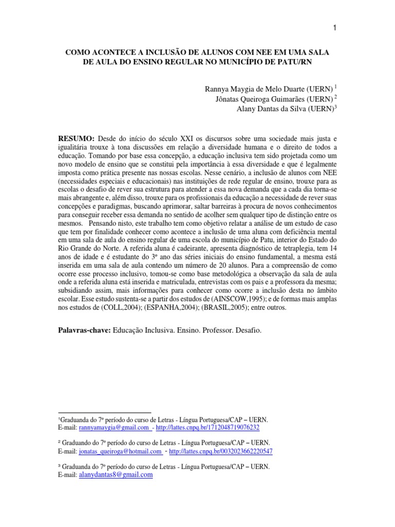 imposta como prtica presente nas nossas escolas. Nesse cenrio, a incluso de alunos com NEE