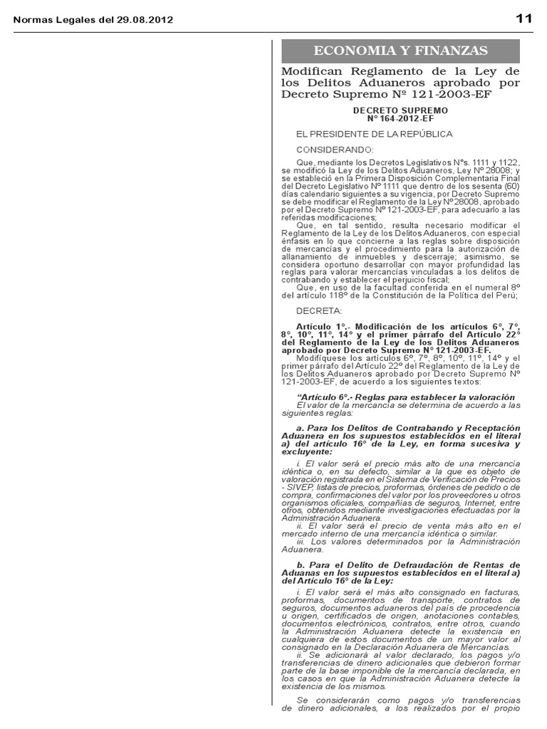 Reglamento de la Ley de los Delitos Aduaneros El presente Decreto Supremo ser refrendado por el