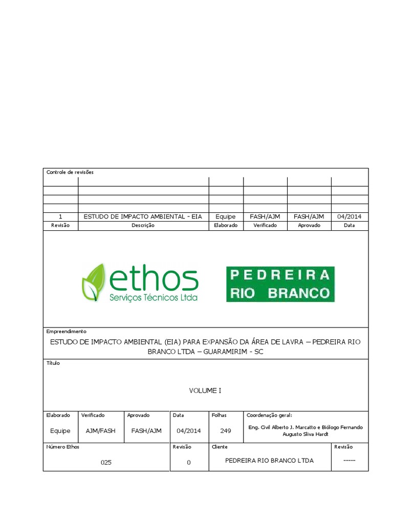 da Pedreira Rio Branco Ltda Guaramirim - SC ...................................................................................................... 81