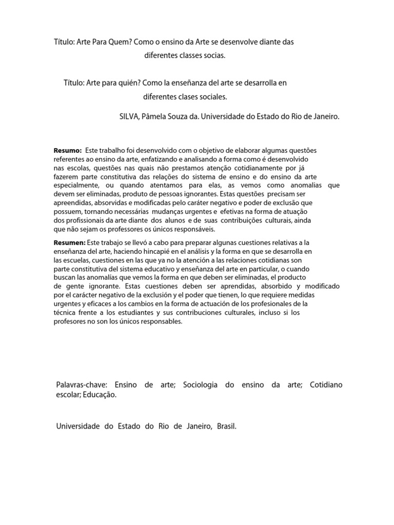 matemática, língua portuguesa ou ciências... Mas arte? Para quê?" (ibid: nota