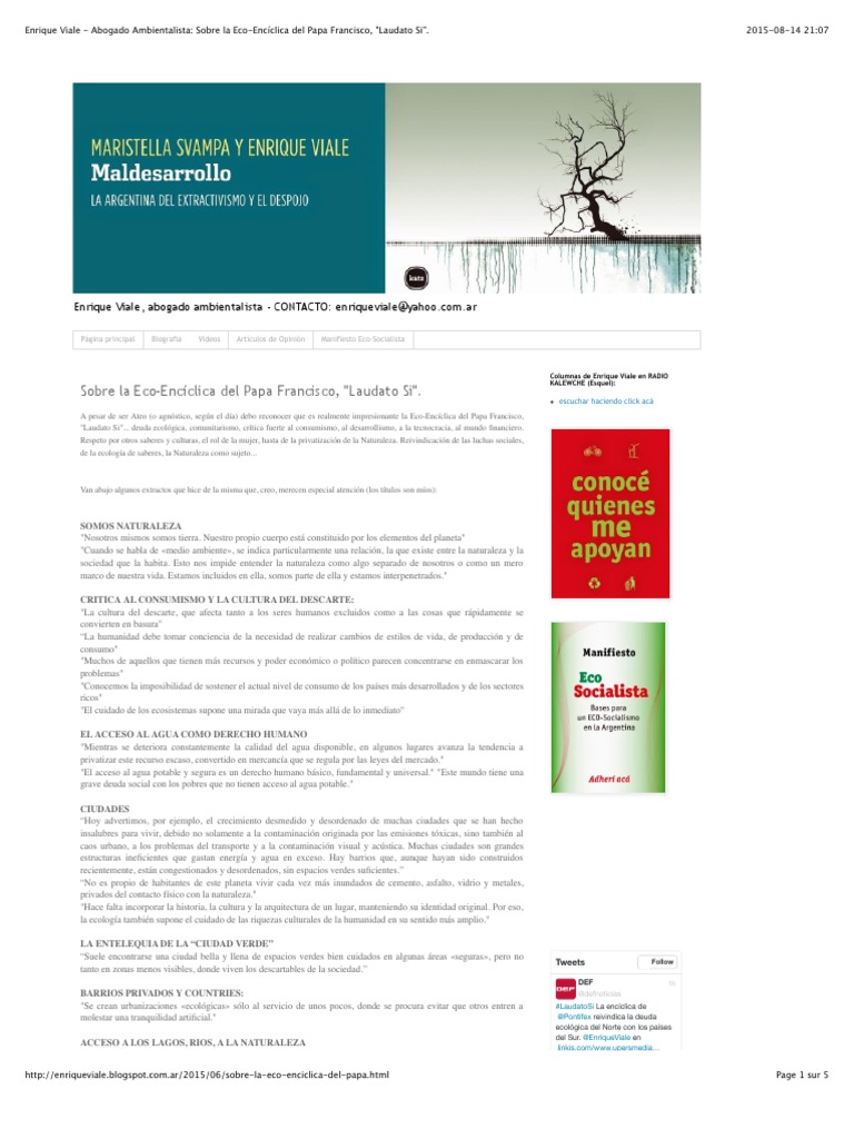 biosfera, siguen alimentando el desarrollo de los pases ms ricos a costa de su presente y de su futuro" Tweet to @EnriqueViale