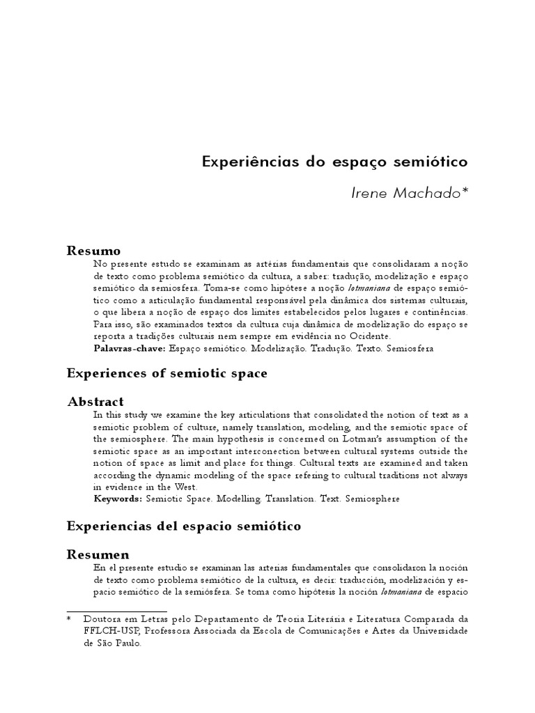 Keywords: Semiotic Space. Modelling. Translation. Text. Semiosphere