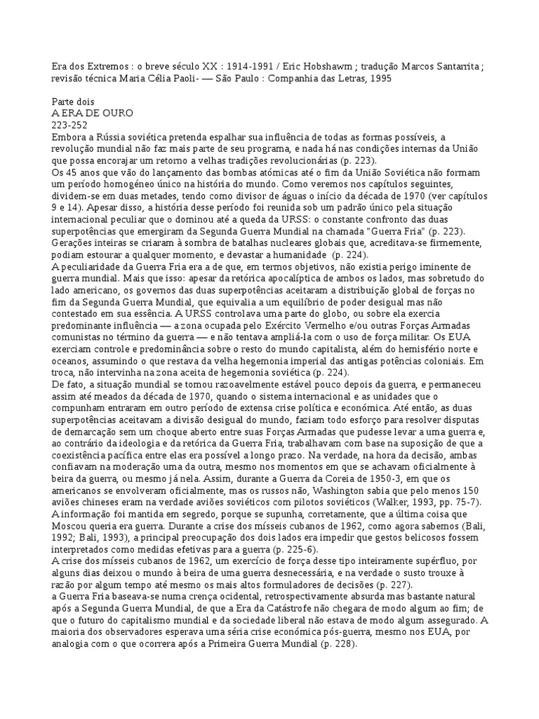 Era dos Extremos : o breve sculo XX : 1914-1991 / Eric Hobshawm ; traduo Marcos Santarrita ;