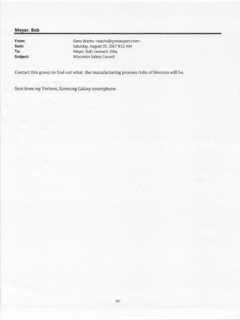 Wiscosin Dem Gov Candidate Dana Wachs' Foxconn Emails