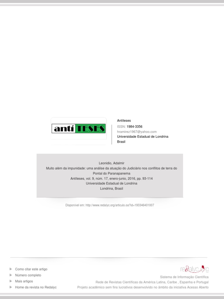 LEONDIO, Adalmir. Razes da violncia rural no Brasil: Pontal do Paranapanema, 1990-2008. 2010. Tese