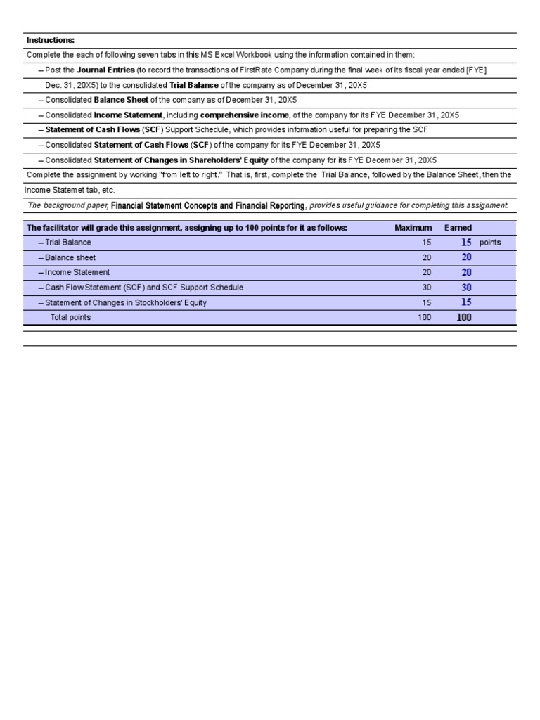 The facilitator will grade this assignment, assigning up to 100 points for it as follows: Maximum Earned