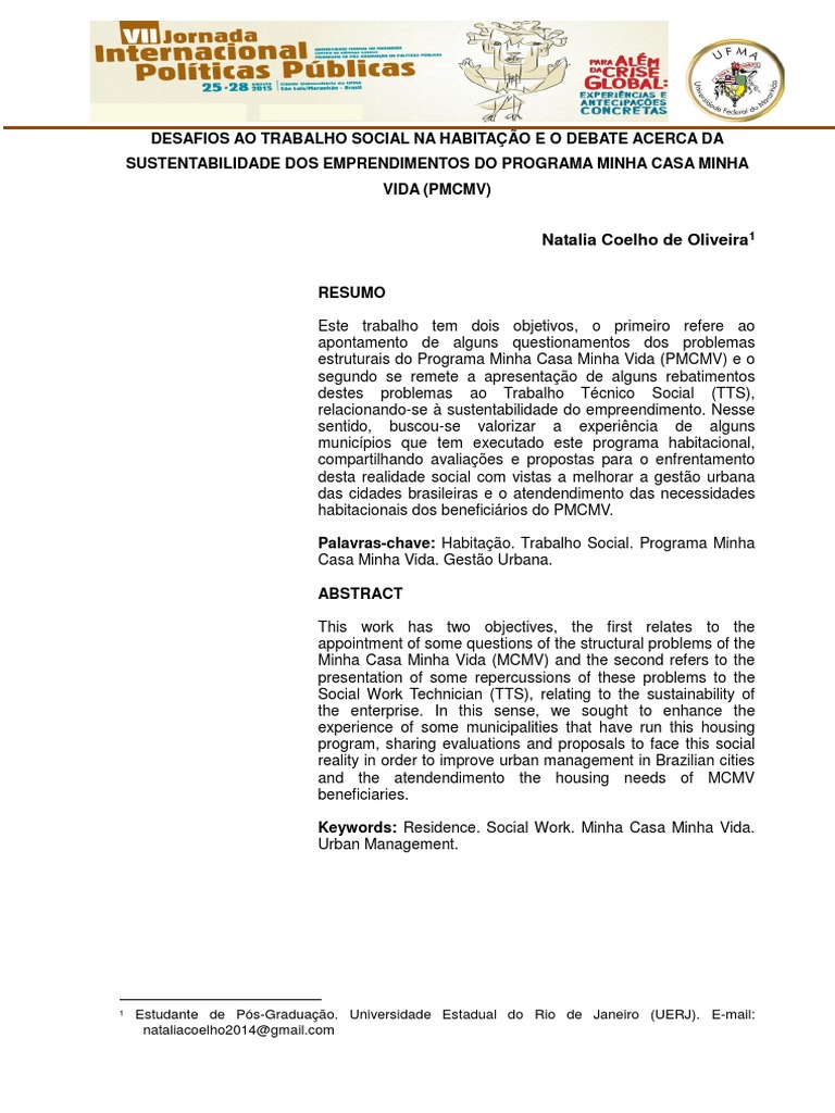 Keywords: Residence. Social Work. Minha Casa Minha Vida.