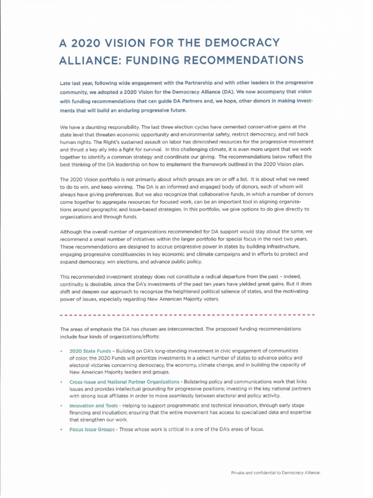 The 2018 Civic Engagement Plan of the PICO Action Fund obtained by the Washington Free Beacon at the secretive Democracy Alliance fall investment conference that took place Nov. 15-18 at the La Costa Resort in Carlsbad, Calif. The docs lay out the group's 2018 electoral strategy with the Center for Popular Democracy and People's Action.