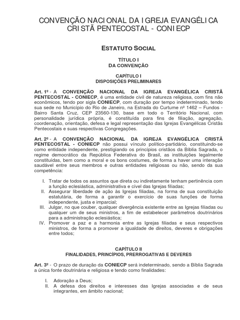 Art. 1 - A CONVENO NACIONAL DA IGREJA EVANGLICA CRIST