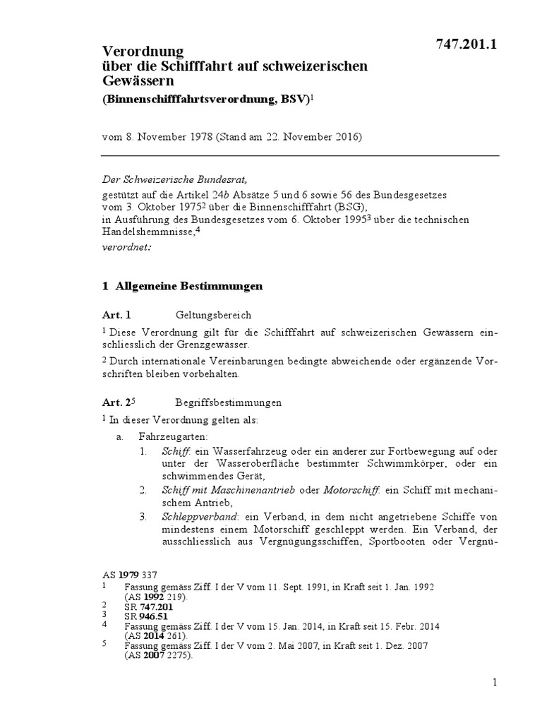 – Verordnung über die Schifffahrt auf schweizerischen Gewässern