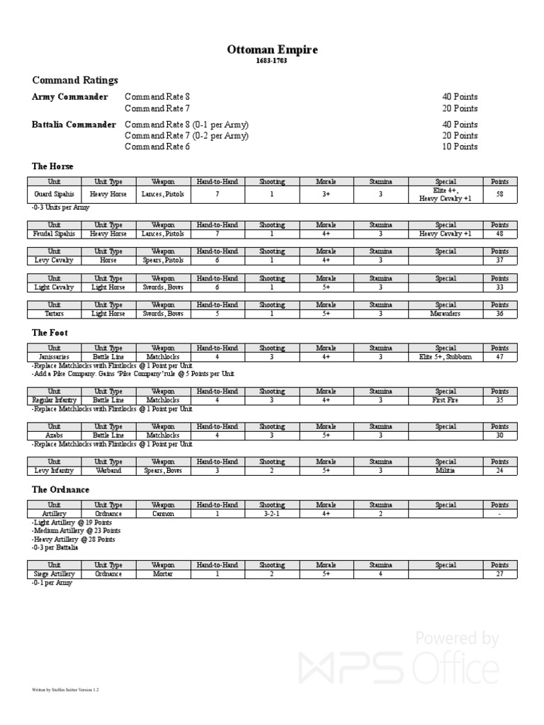 Janissaries Battle Line Matchlocks 4 3 4+ 3 Elite 5+, Stubborn 47