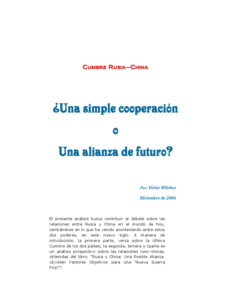 las relaciones ruso–chinas, obtenidas del libro: “Rusia y China: Una Posible Alianza.