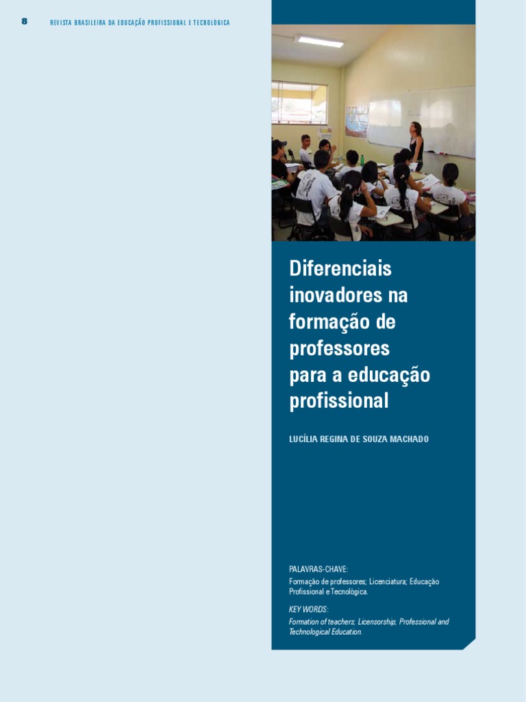 ção tecnológica comparada, avaliação, construção da identidade docente profissional, métodos de ensino na educação profissional, organização escolar, políticas e gestão da educação profissional etc.