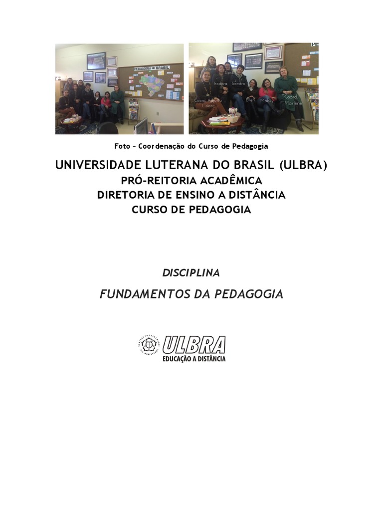 DISCIPLINA: Fundamentos da Pedagogia UNIDADE/EAD: 1000
