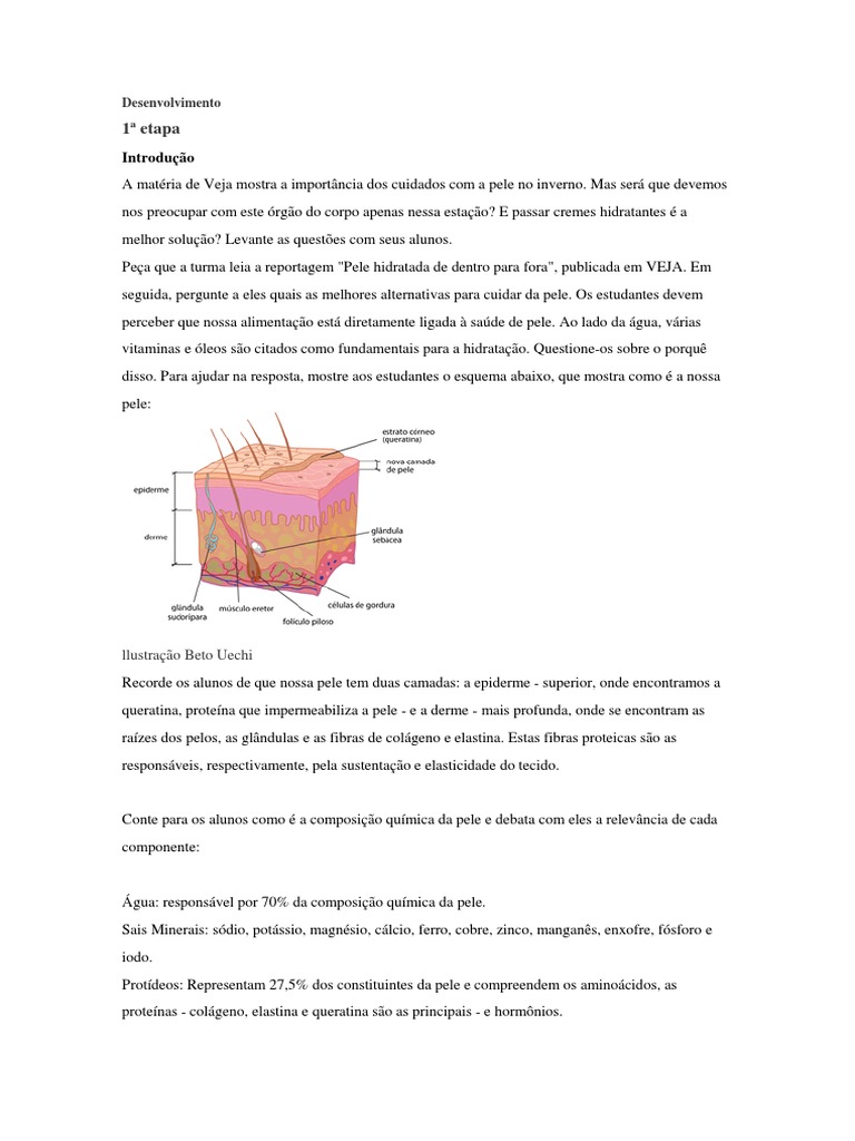 Conte para os alunos como é a composição química da pele e debata com eles a relevância de cada