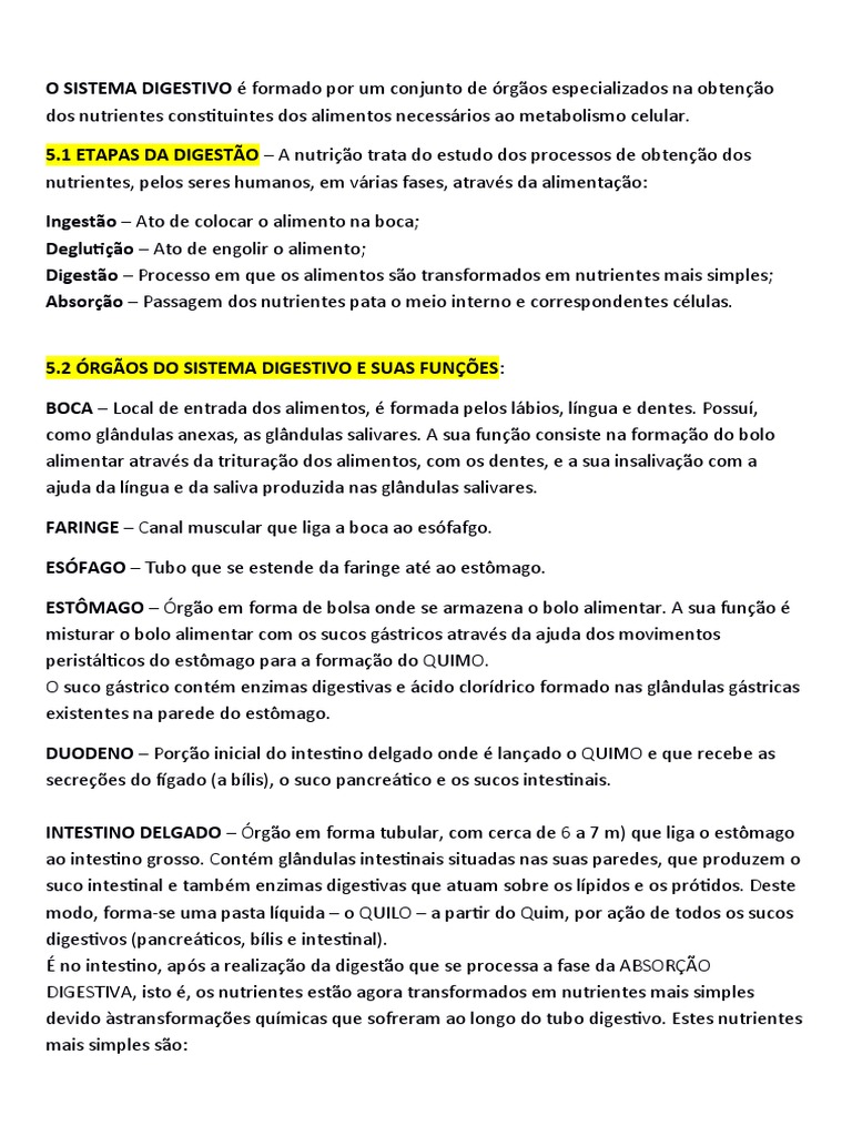 5.2 ÓRGÃOS DO SISTEMA DIGESTIVO E SUAS FUNÇÕES: