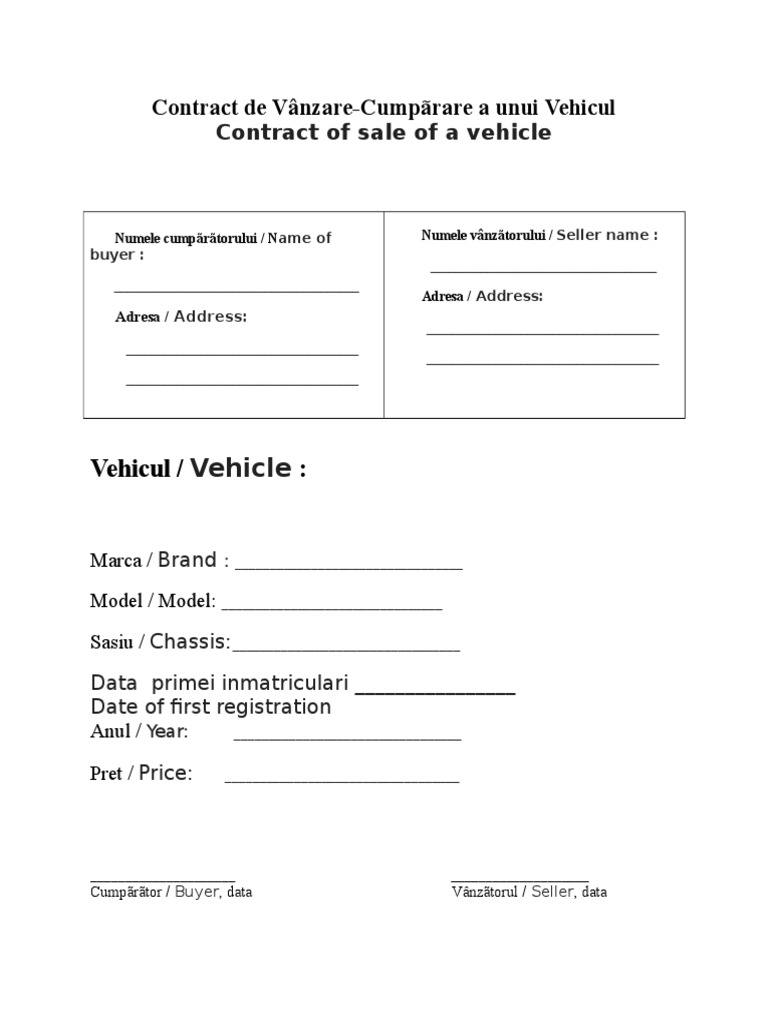 Contract de Vânzare-Cumpãrare a unui Vehicul