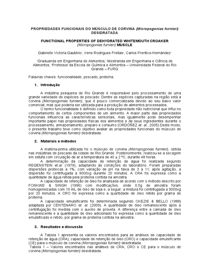 PROPRIEDADES FUNCIONAIS DO MÚSCULO DE CORVINA (Micropogonias furnieri)