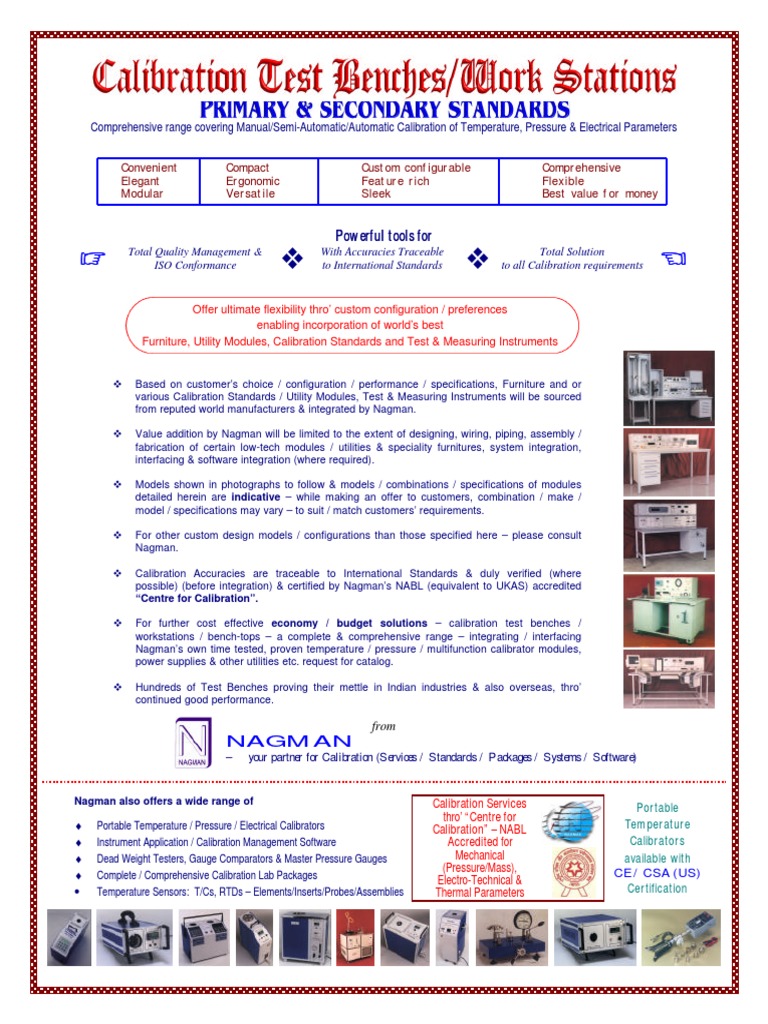 v For further cost effective economy / budget solutions – calibration test benches /
