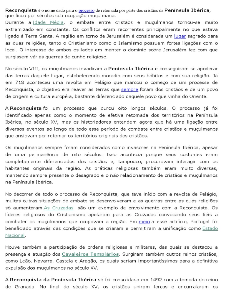 A Reconquista foi um processo que durou oito longos séculos. O processo já foi