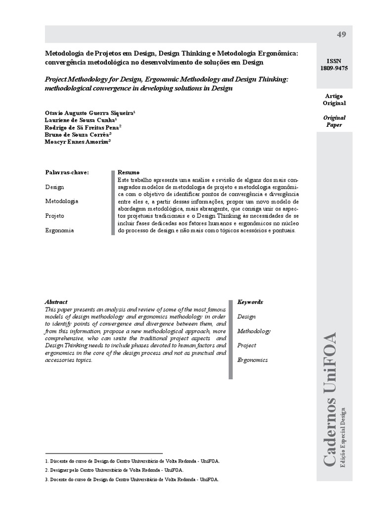 Design sagrados modelos de metodologia de projeto e metodologia ergonômi-