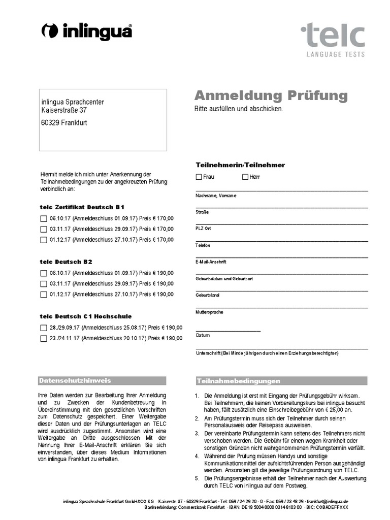 inlingua Sprachschule Frankfurt GmbH&[Link] . Kaiserstr. 37 · 60329 Frankfurt · Tel: 069 / 24 29 20 - 0 · Fax: 069 / 23 48 29 · frankfurt@[Link]