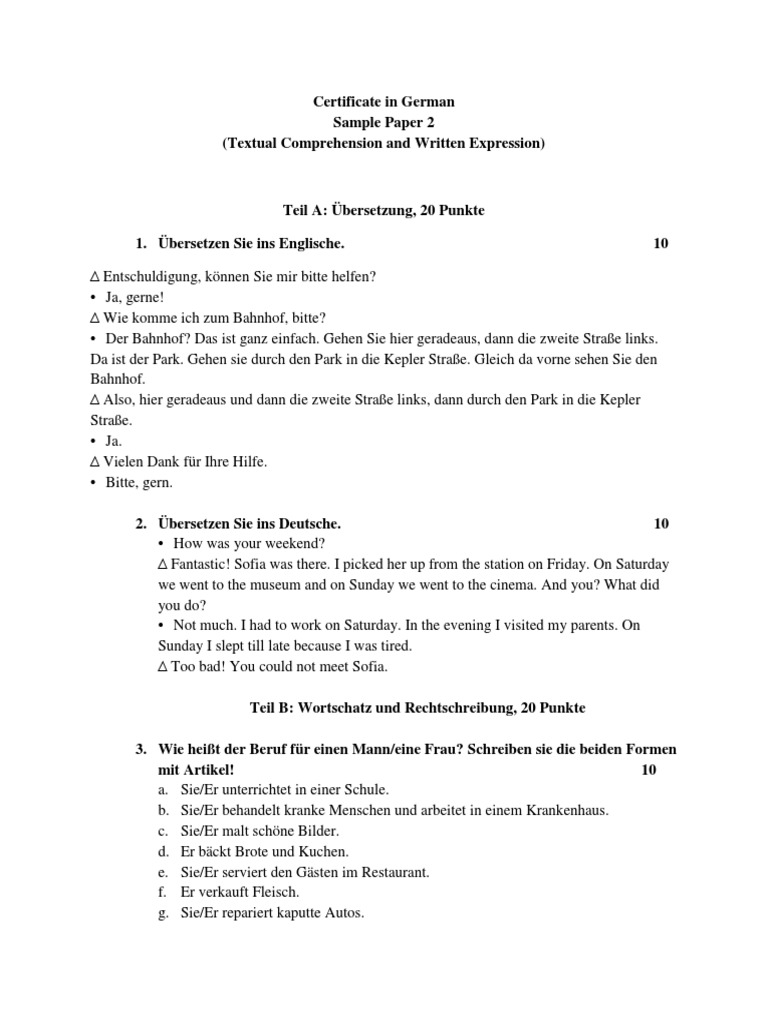 Certificate in German