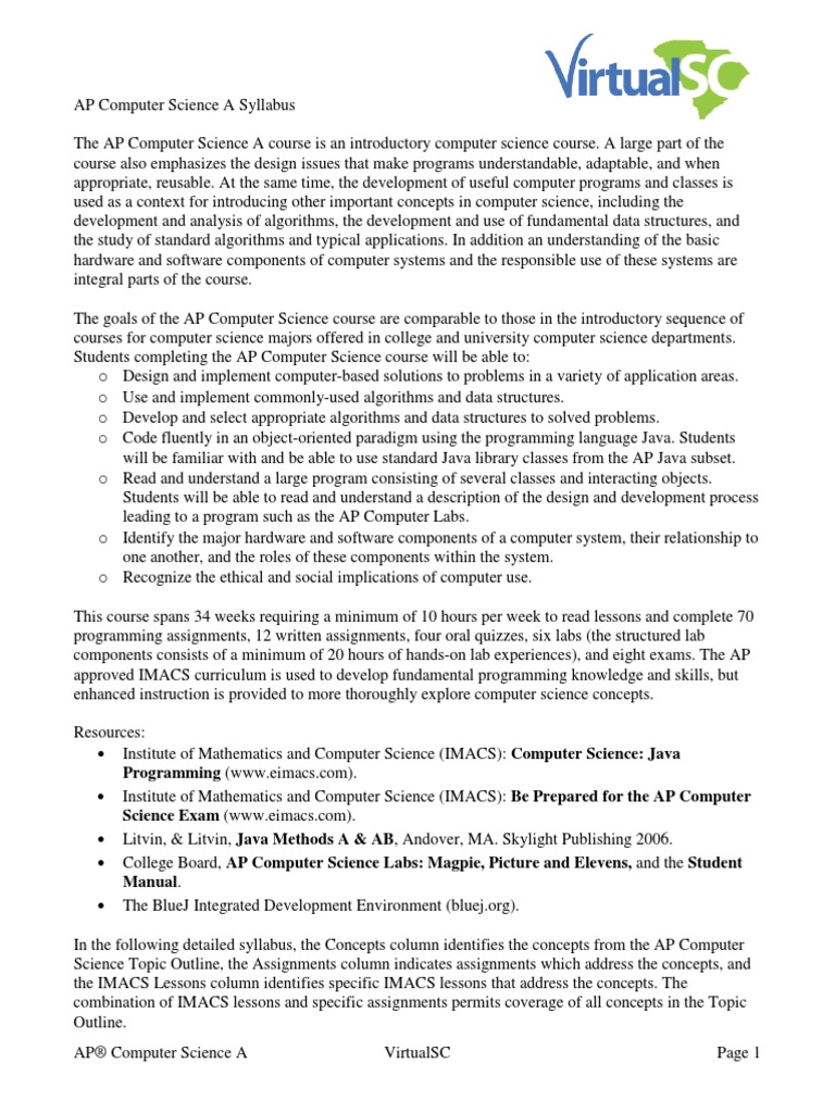 AP Computer Science A Syllabus