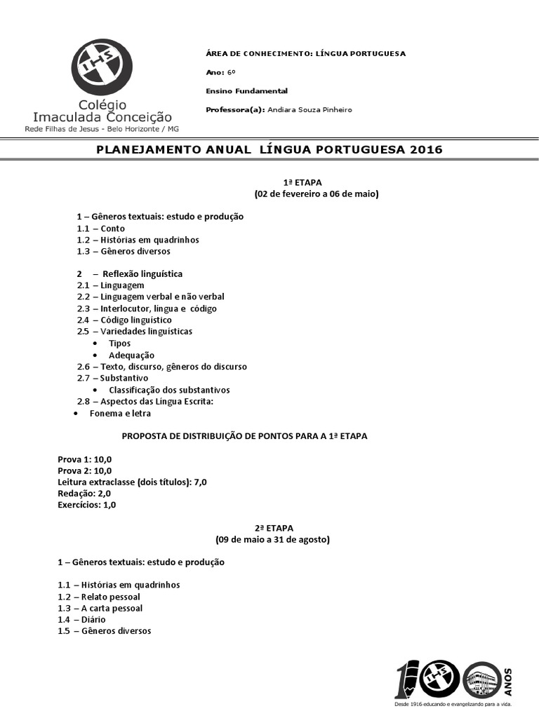 Observação: A redação será trabalhada durante toda a etapa, através de várias atividades e do projeto “A