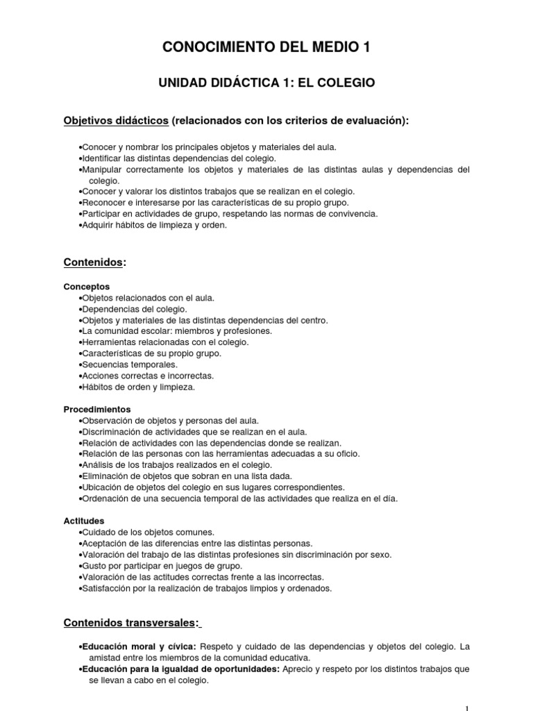 − Los elementos y materiales que hay en la clase, su uso y cuidado.