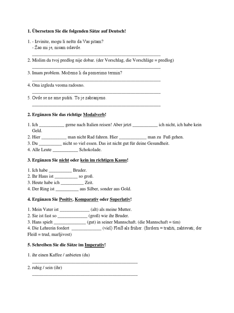 1. Übersetzen Sie die folgenden Sätze auf Deutsch!