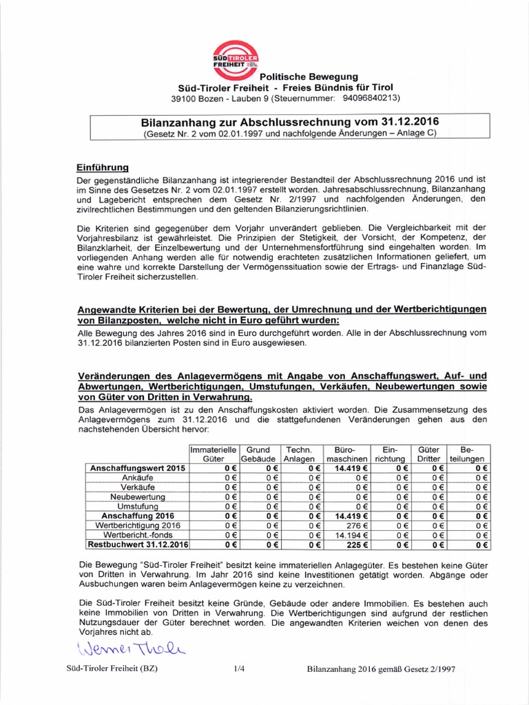 Süd-Tiroler Freiheit (BZ) v4 Bilanzanhang 2016 gemäß Gesetz 211997